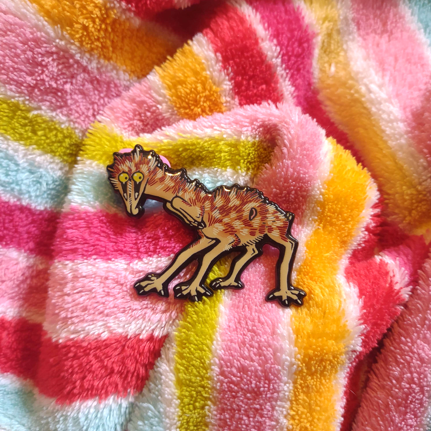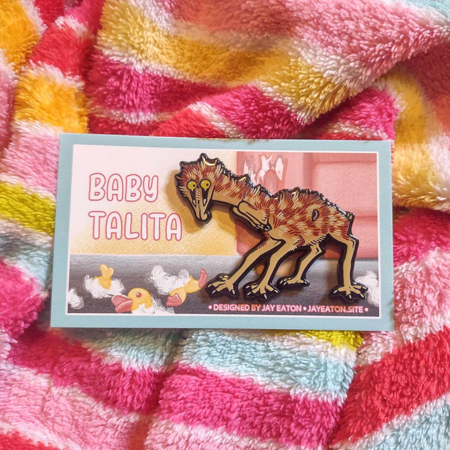 Everyone's favorite horse kitten is now ready to be attached to most fabric surfaces. don't let her chew on your clothes though, her weird scaly little beak teeth will shred them.