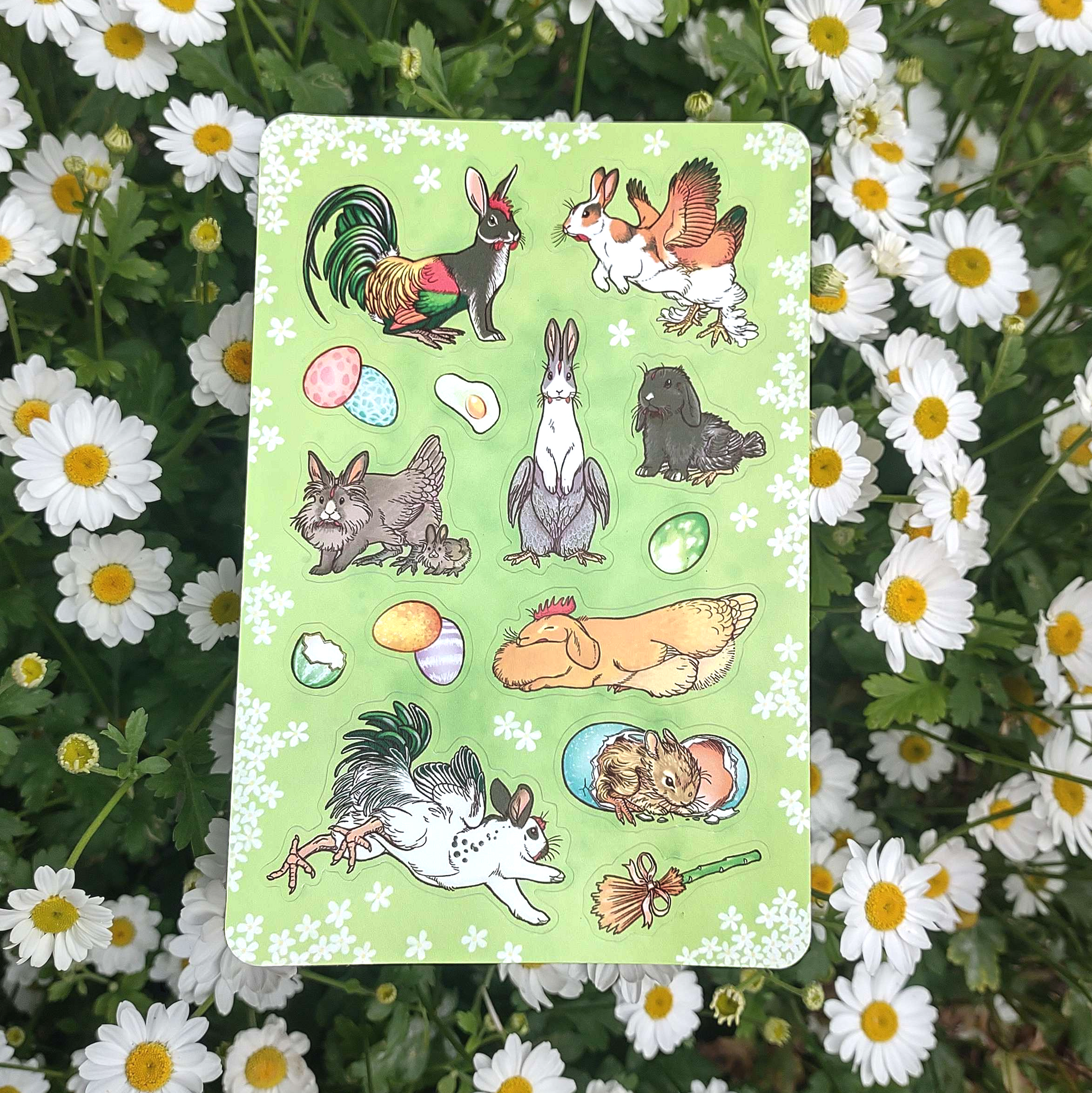 Chabbits are rabbit-chicken hexapod chimeras that lay colorful eggs. They're so cute they almost make you forget about the unethical GMO pet industry they emerged from!